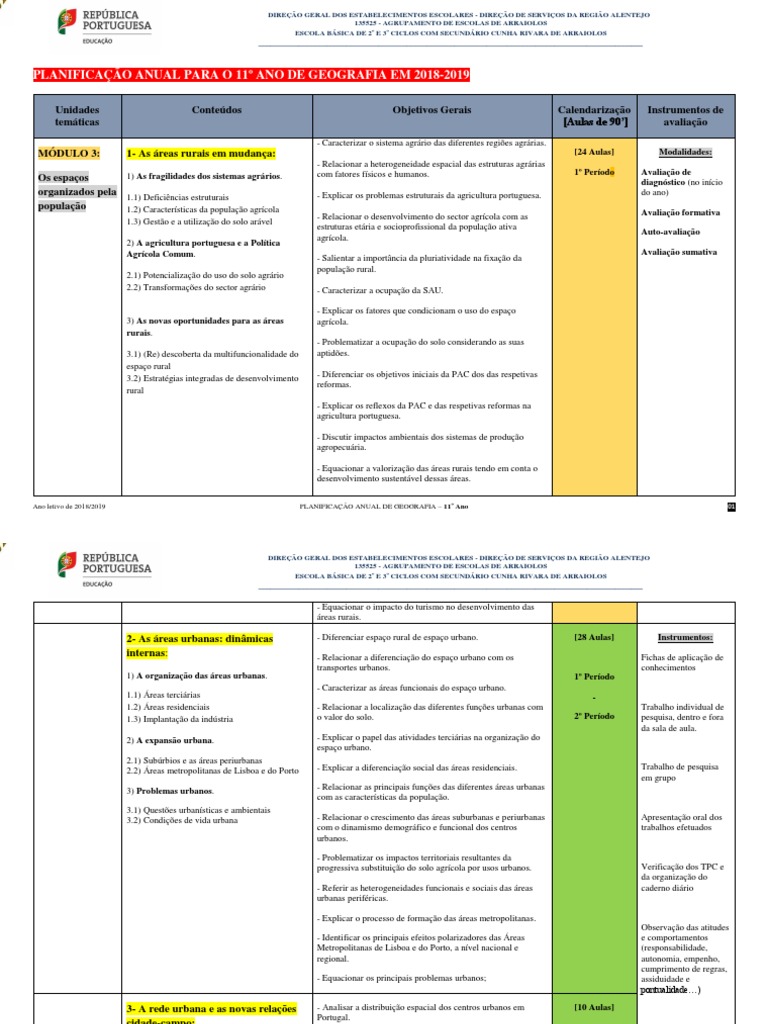 PLANIFICAÇÃO ANUAL DE GEOGRAFIA – 11º Ano