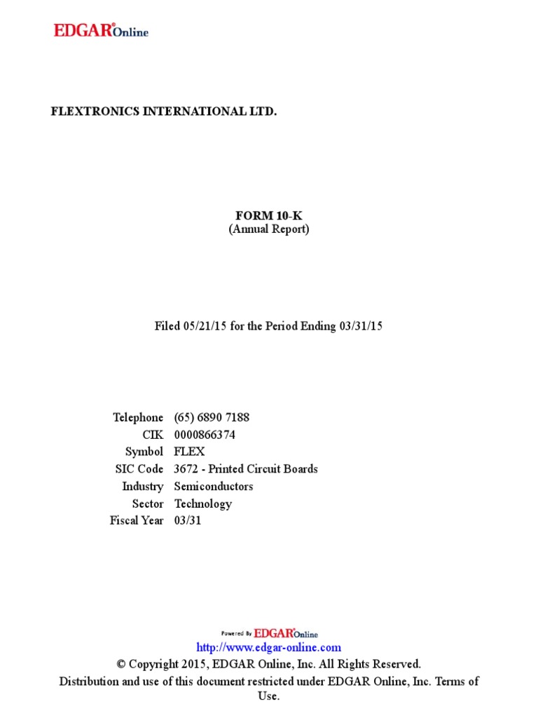 Unless otherwise specifically stated, references in this report to "Flextronics," "the Company,"