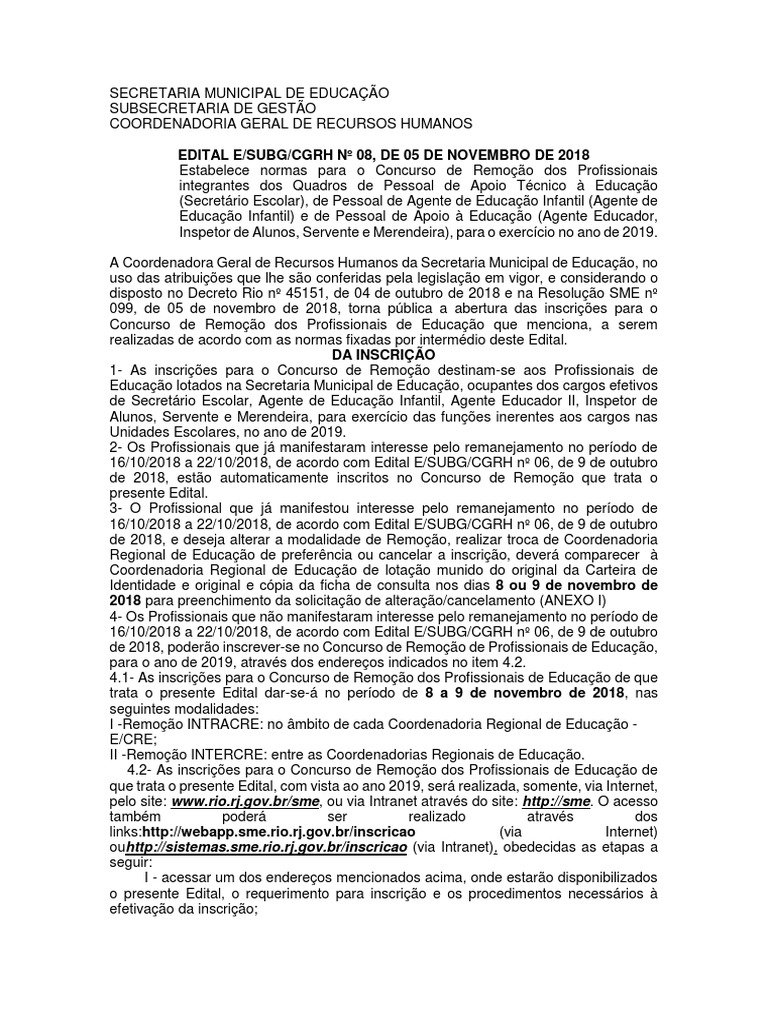 18- O processo do Concurso de Remoção dos Profissionais de Educação de que trata
