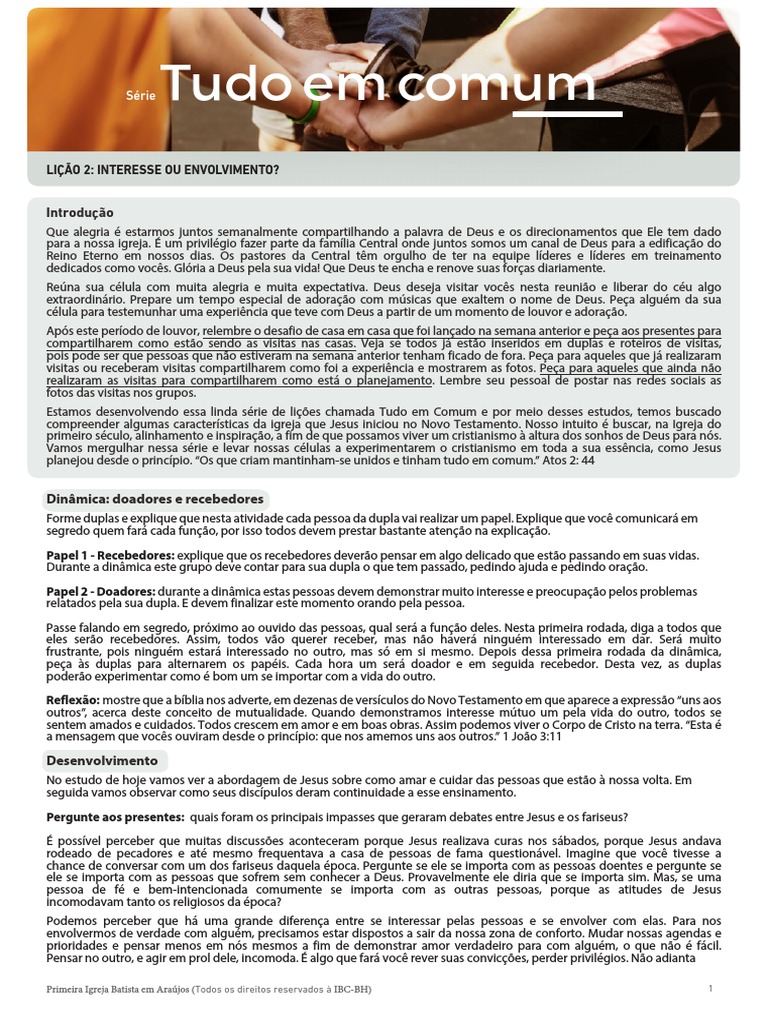 Estamos desenvolvendo essa linda série de lições chamada Tudo em Comum e por meio desses estudos, temos buscado