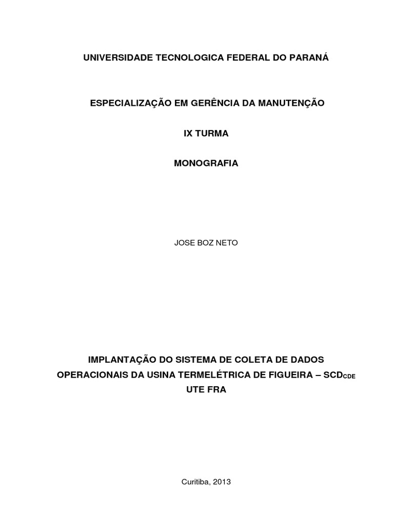 Coleta de Dados Operacionais na Usina Termelétrica Figueira - SCDCDE of UTE