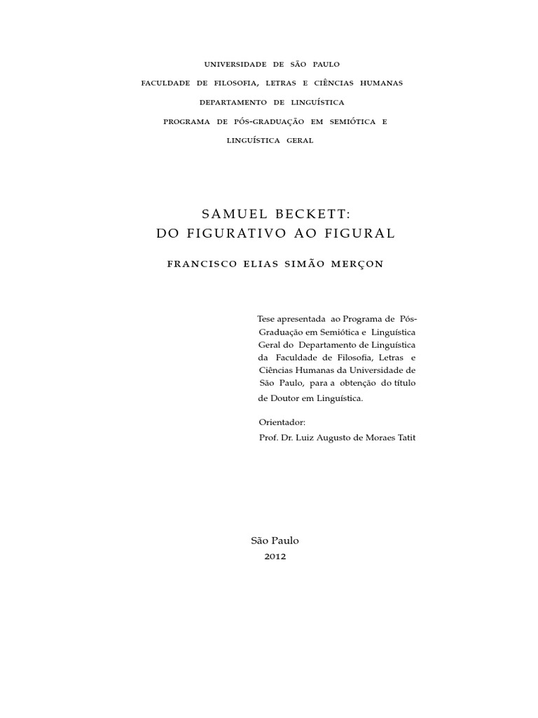 MERÇON, Francisco Elias Simão. Samuel Beckett: do figu- rativo ao figural. 157 f. Tese (Doutorado) — Faculdade de Filosofia, Letras e Ciências Humanas, Universidade de São Paulo, 2012.