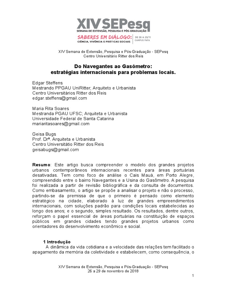Mestrando PPGAU UniRitter; Arquiteto e Urbanista