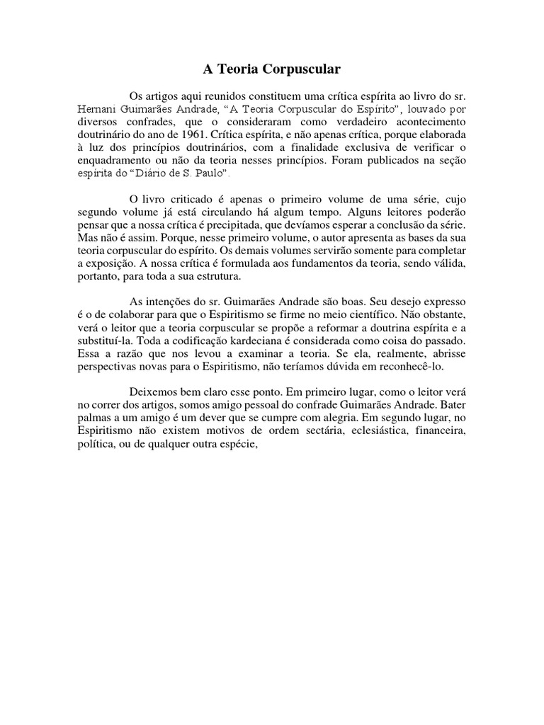 verá o leitor que a teoria corpuscular se propõe a reformar a doutrina espírita e a
