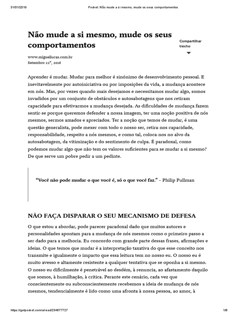31/01/2019 Pocket: Não mude a si mesmo, mude os seus comportamentos