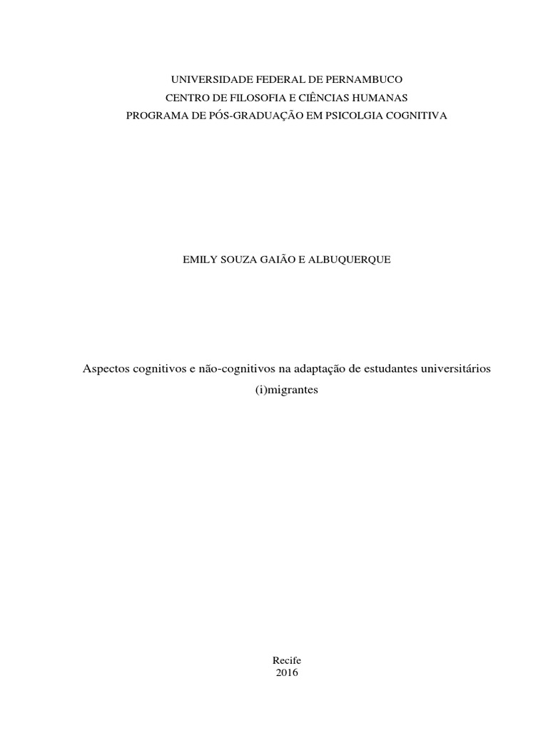Albuquerque, E. S. G. (2016). Aspectos cognitivos e não-cognitivos na adaptação de estudantes universitários (i)migrantes. Dissertação de mestrado, Programa de Pós-Graduação em Psicologia Cognitiva, Universidade Federal de Pernambuco, Pernambuco.