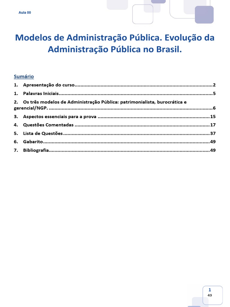 Aula 00 patrimonialista e burocrático. Modelos Teóricos