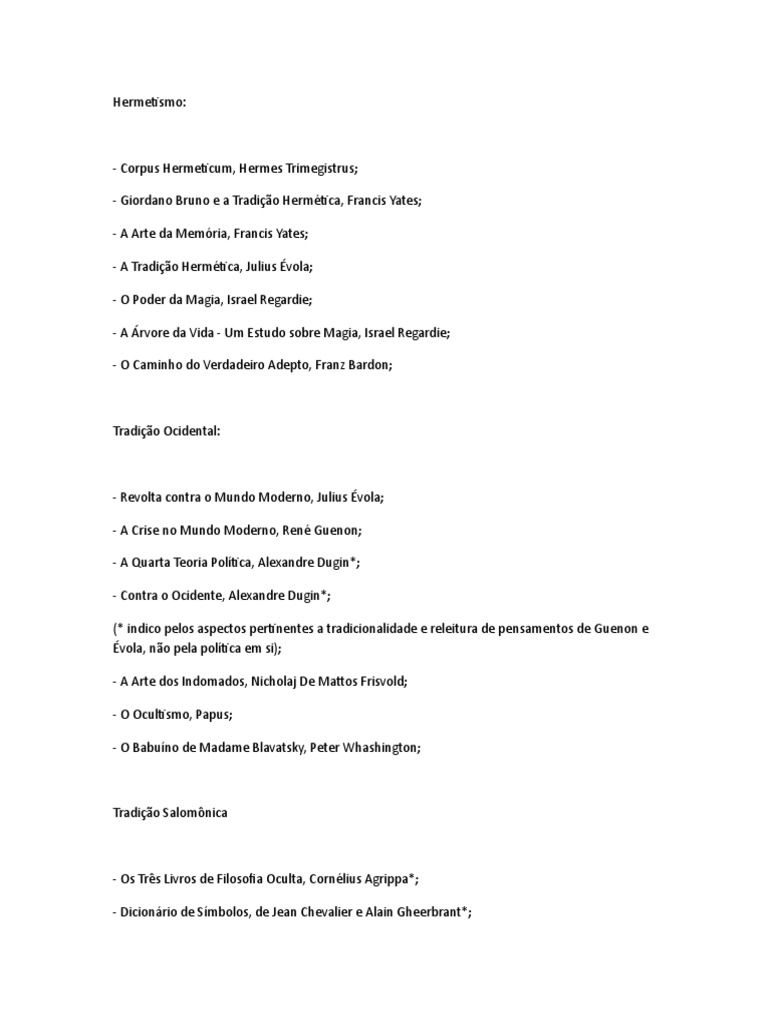 - A Tradição Hermética, Julius Évola;