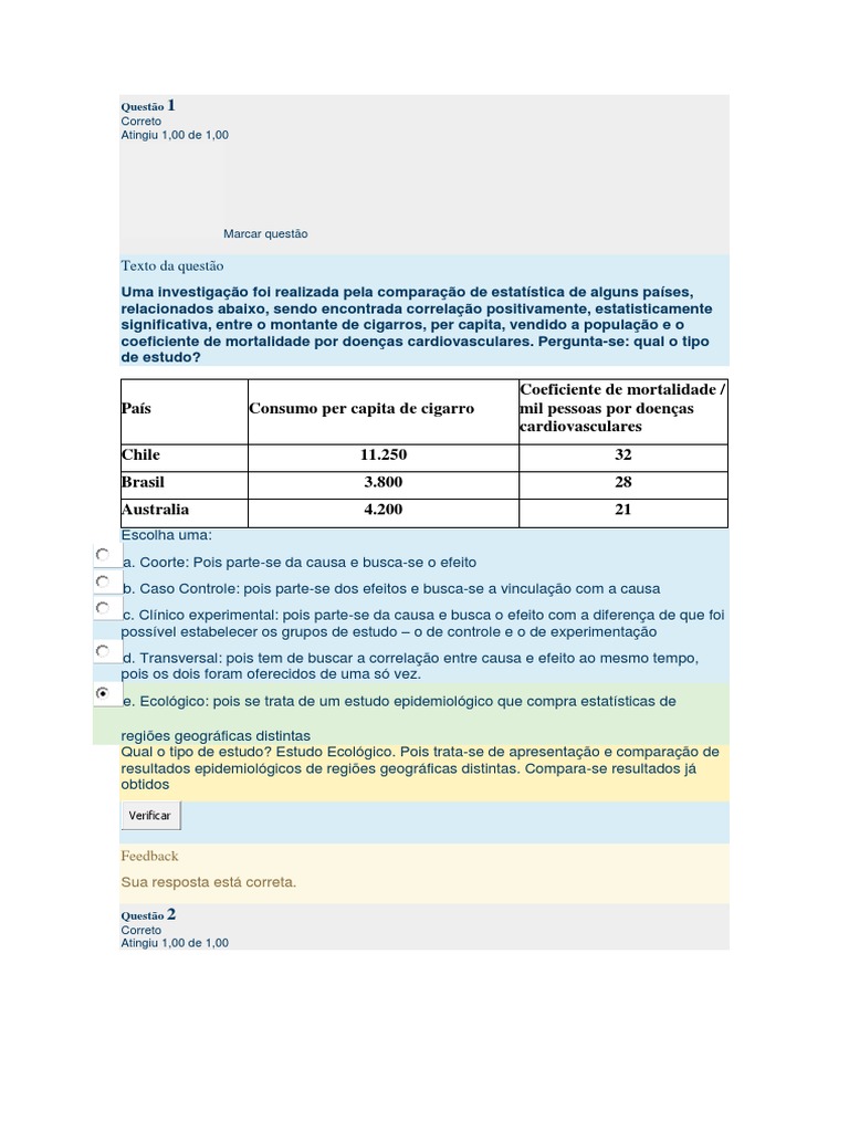e. Ecológico: pois se trata de um estudo epidemiológico que compra estatísticas de