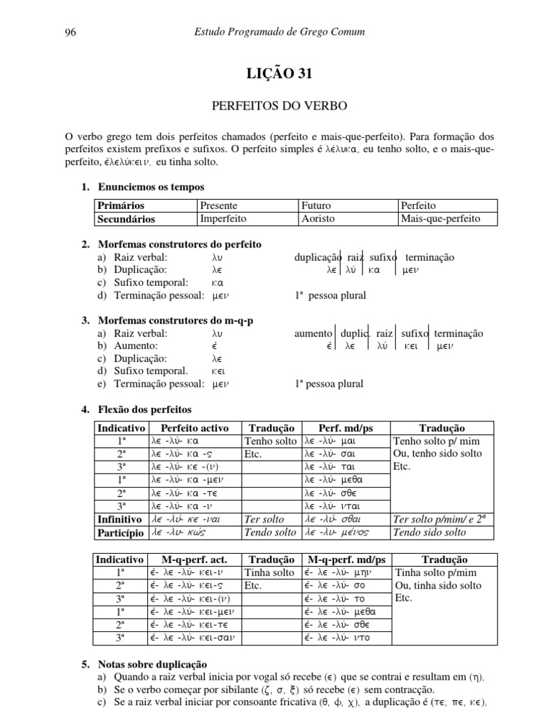 O verbo grego tem dois perfeitos chamados (perfeito e mais-que-perfeito). Para formação dos