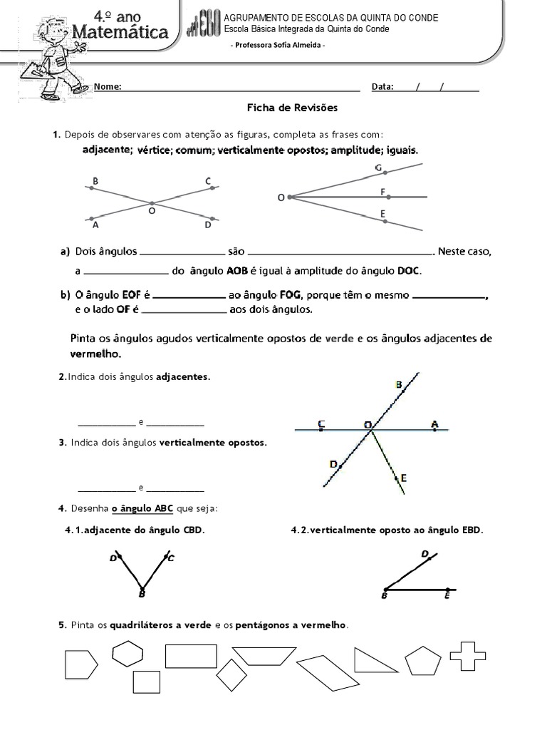 5. Pinta os quadriláteros a verde e os pentágonos a vermelho.