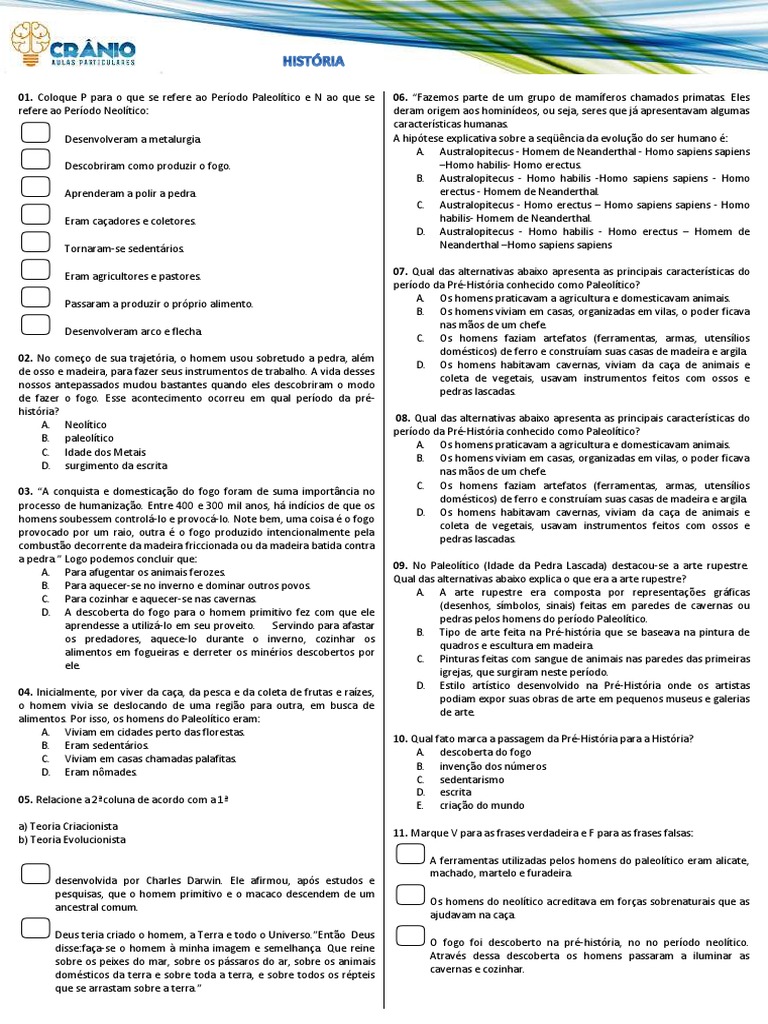 01. Coloque P para o que se refere ao Período Paleolítico e N ao que se