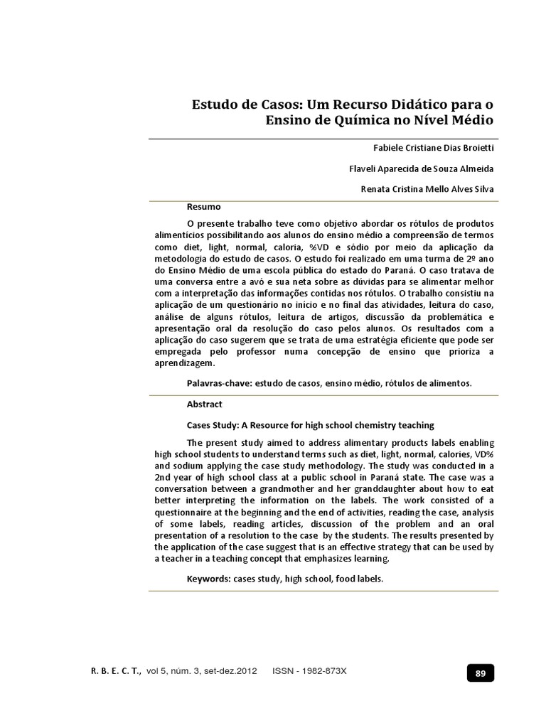 Diferença? (Silva e Furtado, 2005) e Interpretação de Rótulos de Alimentos no Ensino de Química