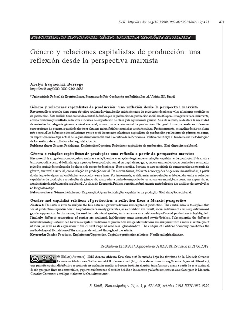 género y de las relaciones capitalistas de producción. Por último, se abordan brevemente algunas de las principales