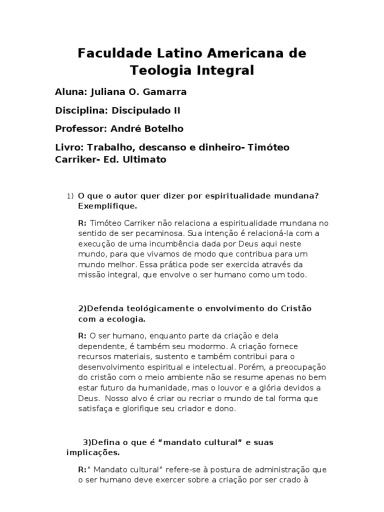 4) O trabalho é um castigo divino? Explique.
