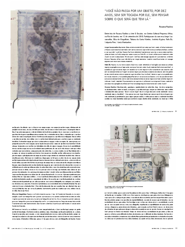 Rosana Paulino Primeiramente, agradeço a oportunidade da entrevista. Bom, são duas perguntas,