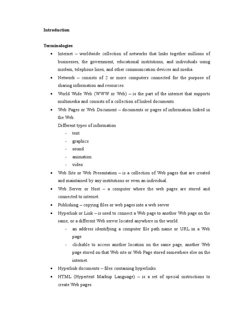 Web Pages or Web Document – documents or pages of information linked in