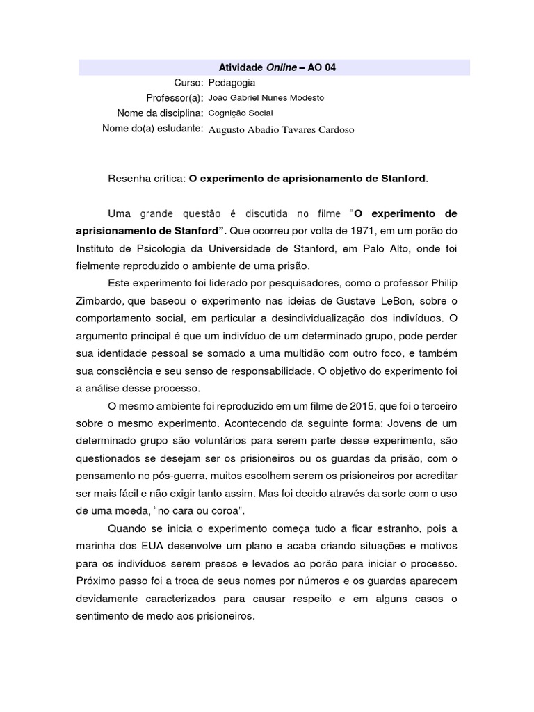 Resenha crítica: O experimento de aprisionamento de Stanford.