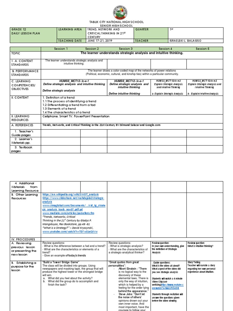 previous lesson - What is the difference between a fad and a trend? - What is strategic-analysis? In your own understanding, give What is Intuitive thinking?