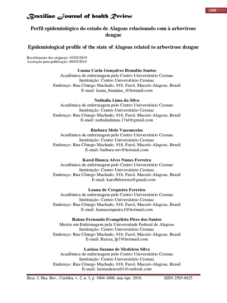 Apresentar o perfil epidemiológico do estado de Alagoas relacionado com à