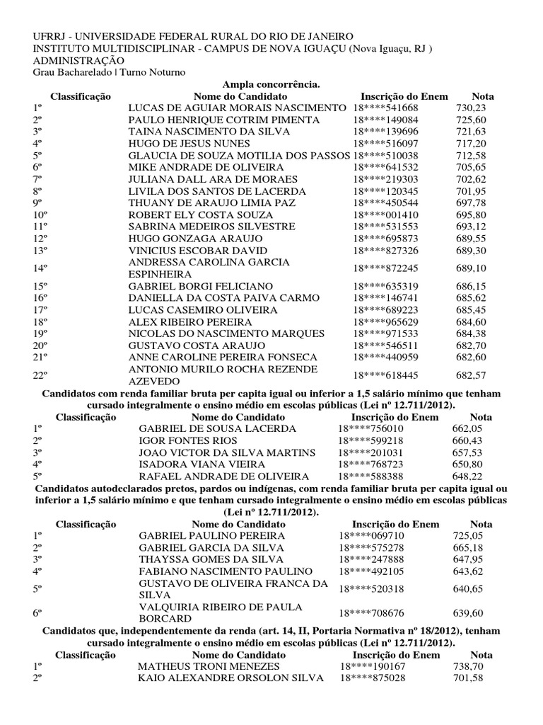 Classificação Nome do Candidato Inscrição do Enem Nota