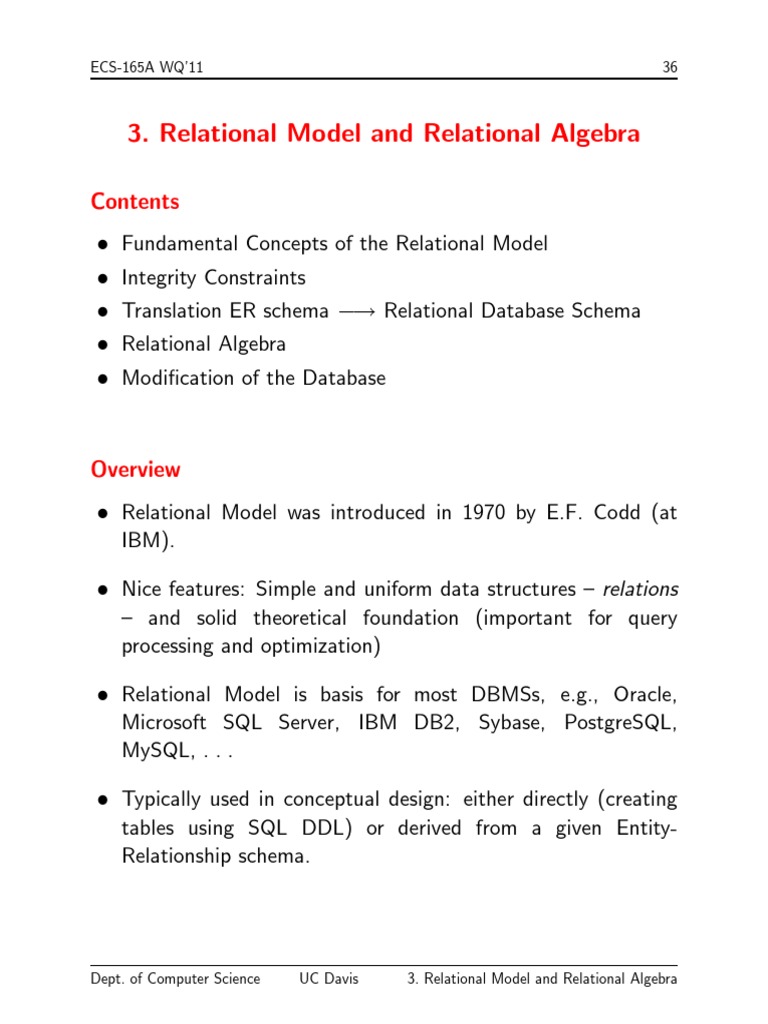Dept. of Computer Science UC Davis 3. Relational Model and Relational Algebra