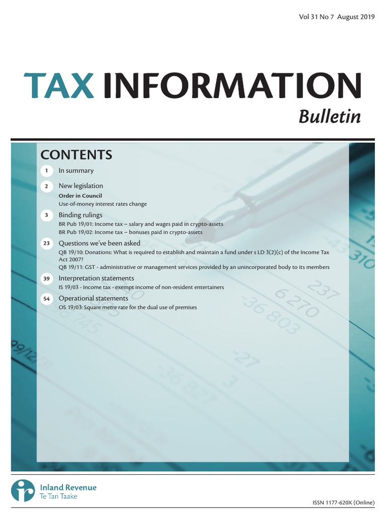 Inland Revenue Department Tax Information Bulletin Vol 31 No 7 August 2019