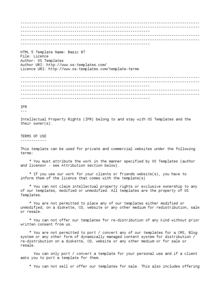 * You must attribute the work in the manner specified by OS Templates (author