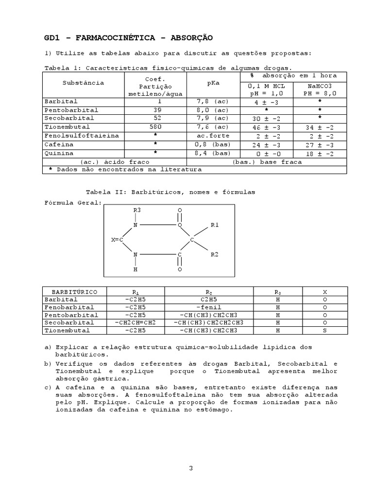 3. Coloque em ordem decrescente de velocidade de eliminação as drogas