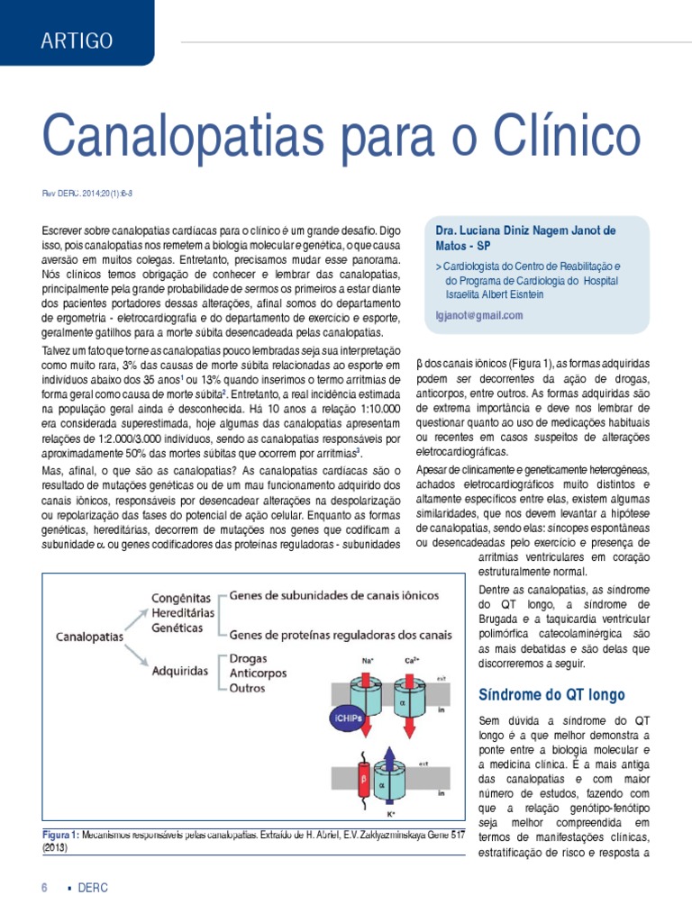 Escrever sobre canalopatias cardíacas para o clínico é um grande desafio. Digo Dra. Luciana Diniz Nagem Janot de ou parada cardiorrespiratória desencadeada por das arritmias são