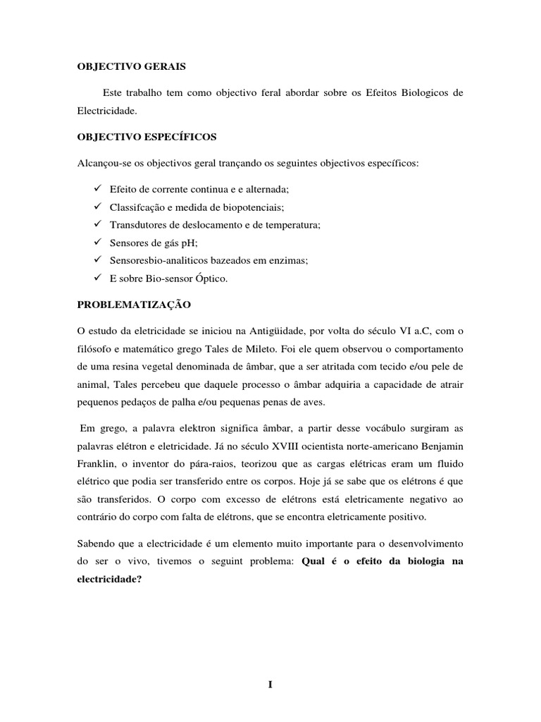 Esse estudo apresenta diferentes visão sobre os efeitos da electricidade dentro da