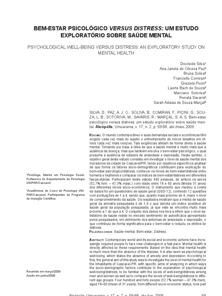 Recebido em março/2009 well-being/distress; to be familiar with the levels of well-being/distress among