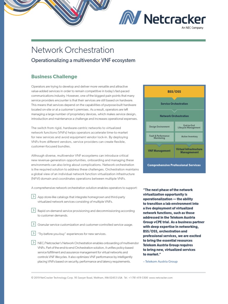 The NEC/Netcracker Network Orchestration offering provides