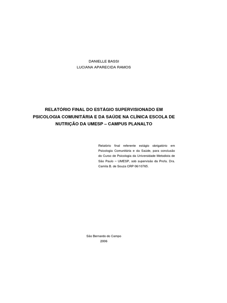 (Supervisora da Psicologia Comunitária e da Saúde).