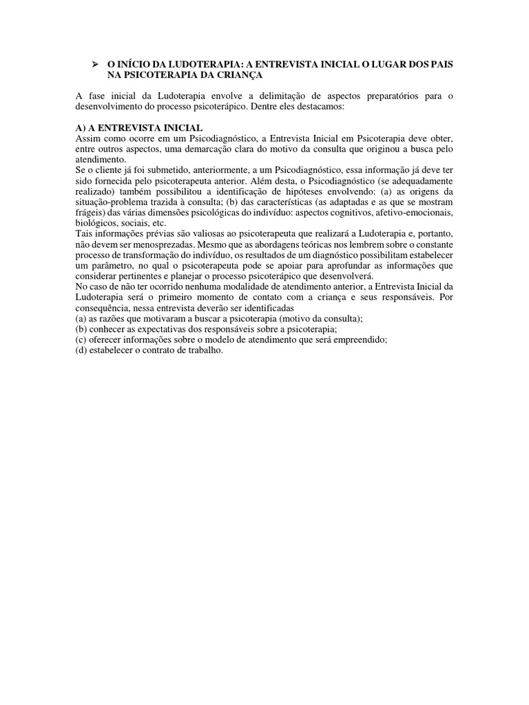 O INÍCIO DA LUDOTERAPIA: A ENTREVISTA INICIAL O LUGAR DOS PAIS