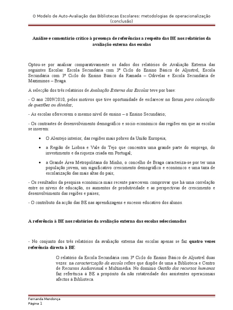 O Modelo de Auto-Avaliação das Bibliotecas Escolares: metodologias de operacionalização