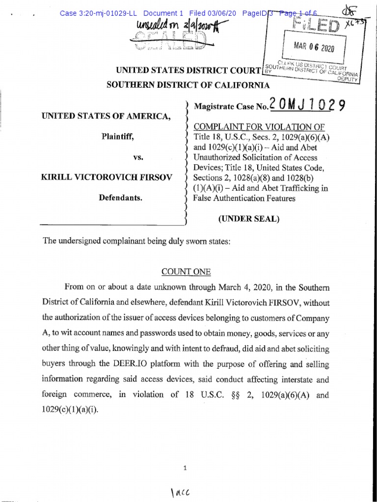 District of California and elsewhere, defendant Kirill Victorovich FIRSOV, without