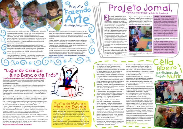 Escolinha realizaram o Projeto “Fazendo Arte”, tendo como principal etapas do crescimento infantil. Sabemos que o lúdico na Educação Infantil suas partes e as diferenças entre os jornais. sobre os artistas da MPB. Como convidados,