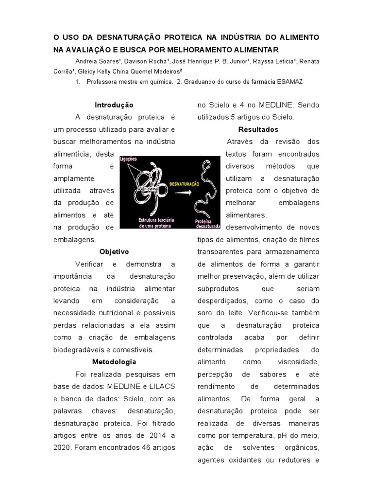 palavras chaves: desnaturação, desnaturação proteica pode ser