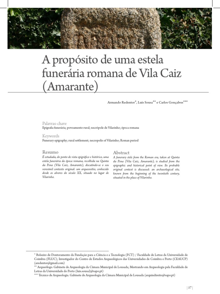 Armando Redentor, Luís Sousa e Carlos Gonçalves. A propósito de uma estela funerária romana de Vila Caiz (Amarante). p. 57-66