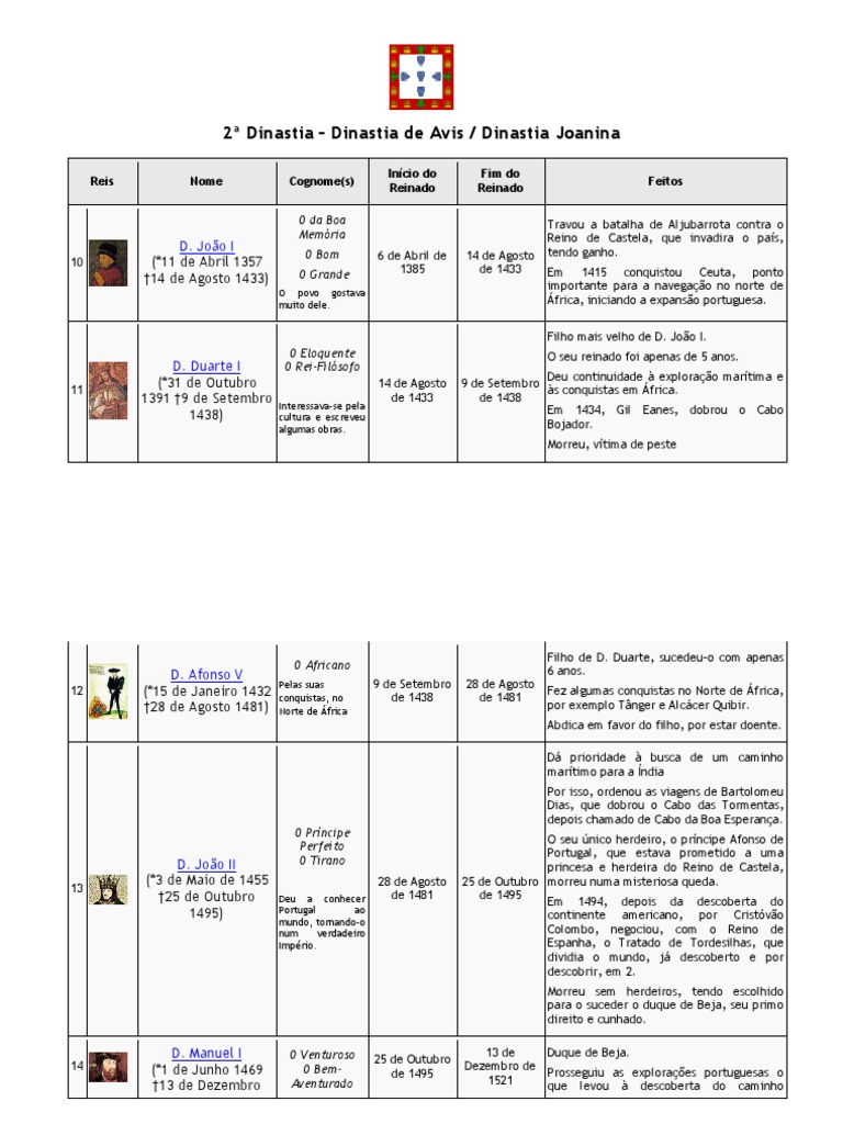 2ª Dinastia – Dinastia de Avis / Dinastia Joanina