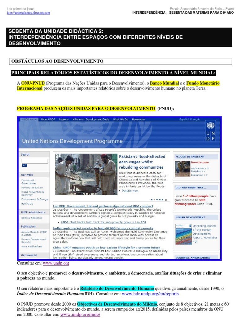 (Programa das Nações Unidas para o Desenvolvimento), o