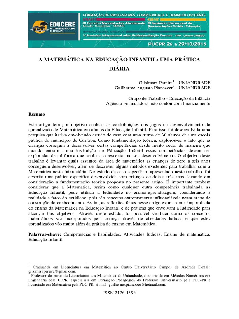 do aprendizado da Matemática em alunos da Educação Infantil. Para isso, busca discutir quais