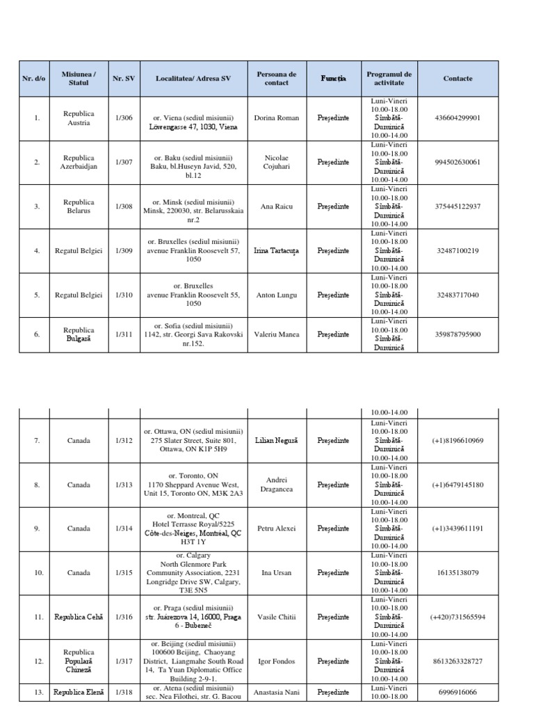 1. 1/306 or. Viena (sediul misiunii) Dorina Roman Președinte Sîmbătă- 436604299901