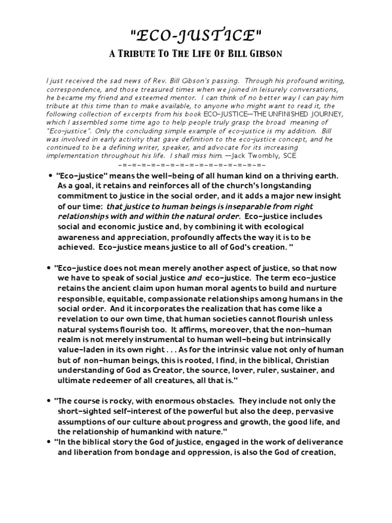 "Eco-justice". Only the concluding simple example of eco-justice is my addition. Bill