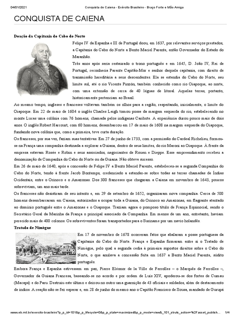 04/01/2021 Conquista de Caiena - Exército Brasileiro - Braço Forte e Mão Amiga