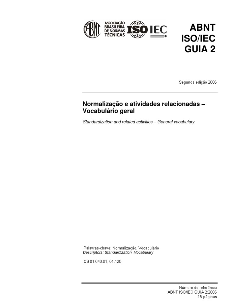 Esta segunda edição cancela e substitui a edição anterior (ABNT ISO/IEC GUIA 2:1998), a qual foi