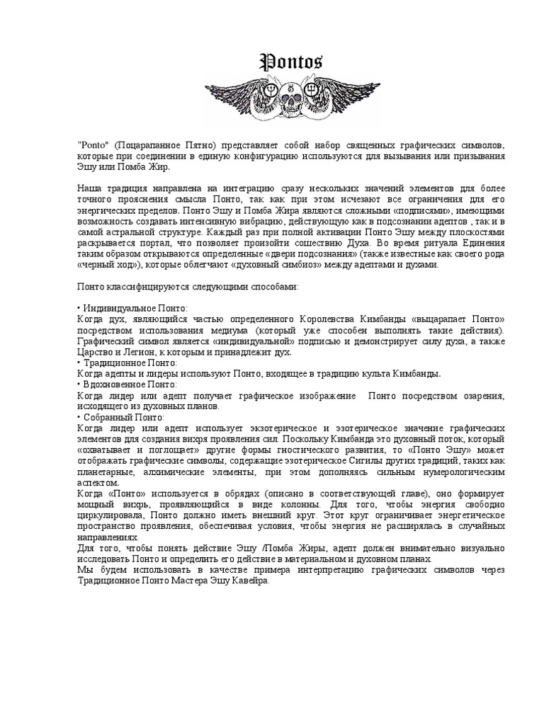 "Ponto" (Поцарапанное Пятно) представляет собой набор священных графических символов,
