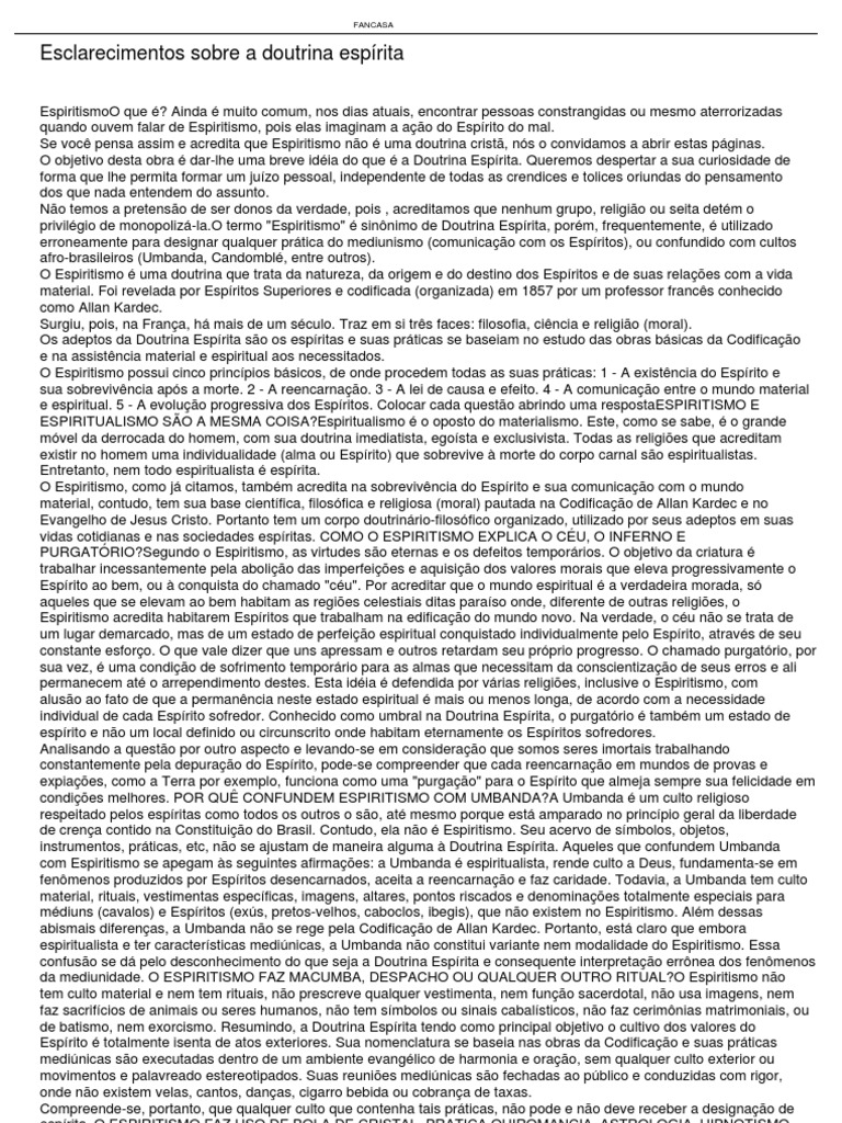 Espírita, apesar da sua atual expansão e crescente número de adeptos. O Espiritismo não é responsável pelos que