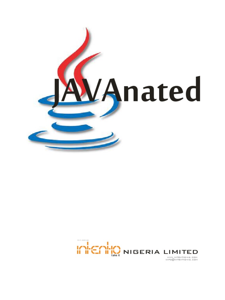 Page |1 Congratulations on the wise decision you just made to participate in the Intentio JAVAnated Program. JAVAnated is a 2-week practical java training program targeted to all those interested in either programming or a programming career. Mobile phones applications, hardware control software, web-based applications (e.g. hi5.com), standalone applications running on all operating systems are just a minute fraction of what the Java programming language does. Due to its versatility, market value and strength, java is an ideal programming language for everyone to learn. This material is designed to give you a very candid introduction to the exciting world of logic building, object-oriented programming, java itself and database concepts. The book is divided into sections and comes with a CD-ROM containing a softcopy of this book itself and all necessary software needed to get you up and running on your own. The good news is that java is not difficult as word-of-mouth claims it is and we make no assumptions on your computer background. While we acknowledge that little experience in programming will be an advantage, training will be handled as if we are being introduced to computers. Make best use of the two weeks, youll be glad you did. All the best!